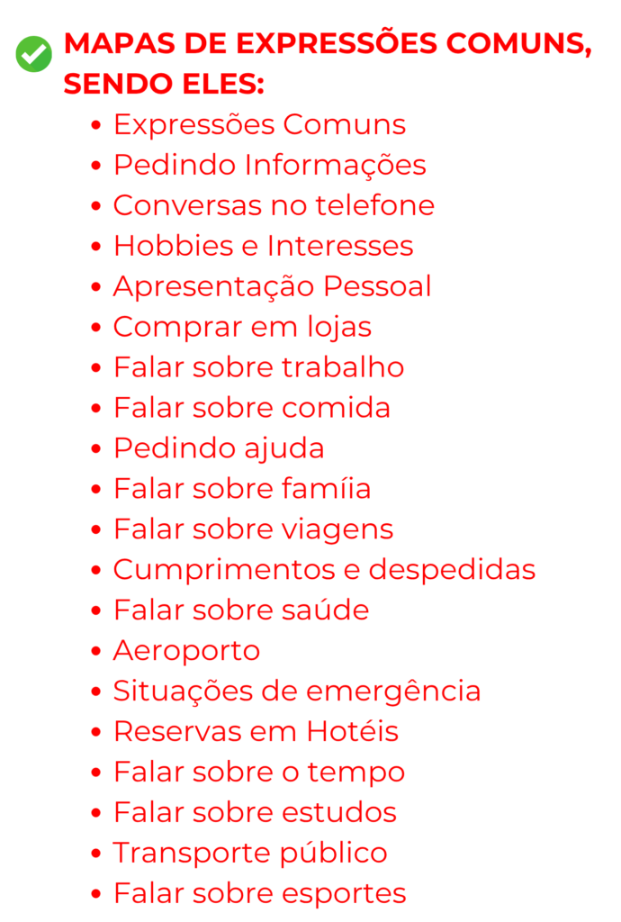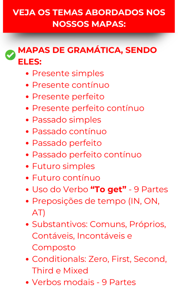 Conquiste a fluência em apenas 30 dias com técnicas comprovadas usando mapas mentais com áudios que vão fazer você se sentir confiante para falar, entender e usar o inglês de forma natural, sem o estresse das aulas tradicionais.